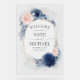 Welcome your guests in style with this elegant modern wedding welcome sign, featuring a transparent acrylic base adorned with dusty blue, navy blue, and blush flowers. This stunning combination creates a sophisticated and contemporary look that's sure to impress.