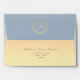 Simple, elegant, modern dusty blue wedding 5x7 envelope with gold floral inside, return address and monogram at the top back.