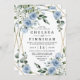 Dusty Blue and Gold Elegant Floral Rustic Wedding Invitation