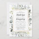 Dusty Blue and Gold Elegant Rustic Floral Wedding Invitation