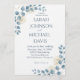 Dusty Blue and Gold Floral wedding Invitation