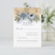 Dusty Blue and Gold Glitter Boho Wedding RSVP Card