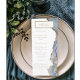 With a classic dusty blue and gold ink design these wedding menus are modern and sleek. Find matching wedding items in my shop.