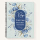 Modern elegant Dusty Blue and pink Floral Recipe Notebook. This stunning notebook features a blue frame and watercolor floral dusty blue flowers with butterflies over dusty blue green splash background . You can easy customize and add your name and date in white. This will be the perfect keepsake gift for any bride-to-be.