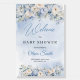 Boho Elegant Dusty Blue and Ivory Flowers baby shower welcome sign poster foam board - fully editable,