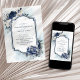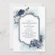 Dusty Blue and Navy Floral Elegant Wedding Invitation