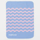 This two-sided baby blanket features a trendy take on the wavy line squiggle in pale shell pink on French blue with one line of editable text for easy customization with a name or date.