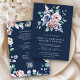 Dusty Blue and Pink Floral QR Code Navy Wedding Invitation