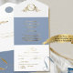 Dusty Blue and Real Gold Foil Monogram Wedding All In One Invitation