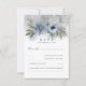 Silver glitter and dusty blue flowers bouquet watercolor wedding reply cards