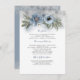 Dusty blue and silver glitter watercolor flowers wedding details - information - insert card