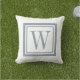 Dusty Blue and White Classic Square Monogram Outdoor Pillow