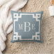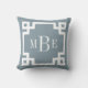 Dusty Blue and White Greek Key | Monogrammed Throw Pillow