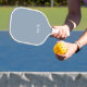 This modern pickleball paddle design features a dusty blue background, with your initials in bold white text for a look that is simple and stylish, yet professional.