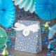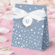 Dusty blue and white polka dot pattern wedding fav favor boxes