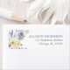 Dusty blue and yellow floral watercolors label