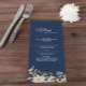 This Dusty Blue Autumn Boho wedding menu combines an antique vibe with a retro bohemian wildflower look. The elegant, neutral beige wildflowers on top of the dusty blue, navy background, with its classy calligraphy typography, allows for a formal but wild and floral, vintage style marriage celebration theme.