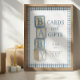 Guide guests to the gift table with this charming Cards and Gifts sign. Featuring vintage-style baby blocks and soft dusty blue gingham accents, this design adds a sweet coordinated touch to your baby shower décor. Display in a frame or on a table stand for an inviting and cohesive setup.