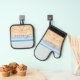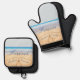 Dusty Blue Beach Wedding Couples Names in Hearts in Sand oven mitts. Perfect for Bride and Groom, out-of-town guest gift bags, or for members of the wedding party.