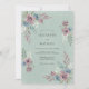 Soft blossoms in dusty blue and rose hues drift across a tranquil sage backdrop. This design evokes a sense of gentle romance and ethereal beauty. Delicate leaves and floral accents complete the serene aesthetic.