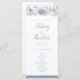 Bold and beautiful. This rustic but elegant elegant wedding program design includes a floral theme of leaves, blossoms and roses. Color palette includes shades of dusty blues and blush. This wedding order of service is part of a great fall, winter or even spring and summer themed wedding suite.