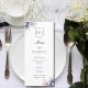 A lovely dusty blue and blush pink floral botanical wedding menu for the reception. Add your initials at the top and your names and date at the bottom to personalize. All fields can be edited. See our collection of matching wedding products.