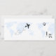 Dusty Blue monogram boarding pass wedding ticket, a portrait of the engaged couple, a plane with a loop trail, and a customizable save the date template. Please remember to edit the text on the back of the monogram.