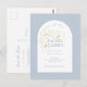 Dusty Blue | Boho Arch Gold Floral Wedding Postcard