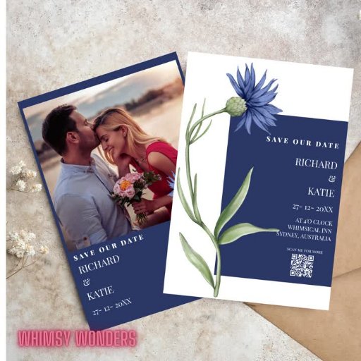 Plain white envelopes are included with paper invitations and will come to fit the invitation size you select. If you don’t need the envelopes, you may choose to not receive them by selecting the dropdown below "Envelopes" and choosing "None." If you’d like to have a design on your envelopes, you can browse all of these available envelopes to find the design that complements your Dusty Blue Bold Floral Stylish Qr Code Wedding In Invitation.