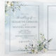 Dusty Blue Botanical Greenery Watercolor Script Tri-Fold Invitation