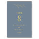 Add a touch of refined elegance to your reception with this personalized, minimalist wedding table number card. This design features a delicate, minimalist line drawing of an olive branch with olives and leaves — bringing a subtle botanical charm to your table setting. The elegant design is complemented by calligraphy script and clean typography fonts, all set against a stylish dusty blue background for a soft, sophisticated look. Perfect for couples who appreciate simple beauty and timeless style.