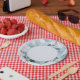 Elegant pastel dusty blue botanical watercolor floral decorative plates. Perfect and easy clean up for your special day.
