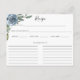 Pretty watercolor dusty blue flower and green botanical branches, recipe card. Designed to match our Dusty Blue Botanical Collection.