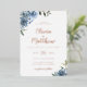 Elegant watercolor dusty blue botanical arrangements, wedding invitation. Features, foil typography with coordinating dusty blue color backing.