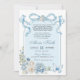 Dusty Blue Bow Coquette Butterfly Silver Quinceanera Invitation, Floral Rose Sweet 16th Invite, Editable Mis Quince XV Años