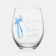 Dusty Blue Bow She's Tying the Knot Bridal Shower Stemless Wine Glass