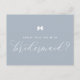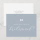 Ask family and friends to be part of your wedding with this personalized "Will you be my bridesmaid" card. It features a cute bow, a whimsical script and a dusty blue background. Personalize by adding a name and message.