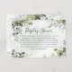The design features a bouquet of watercolor greenery, eucalyptus and a succulent over a white background with dusty blue watercolor splashes. Design also features greenery in shades of dusty blue and various green colors.