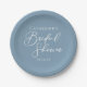 Dusty Blue Bridal Shower Personalized White Script Paper Plates