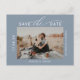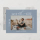 Elegant dusty blue brushed script 2 photos save the date, all the colors are fully editable to match your wedding color scheme.