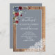 Dusty Blue Burgundy Wood Lace Script Wedding Invitation