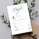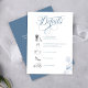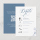 Elegant dusty blue wedding details card featuring romantic calligraphy script and a clean, minimalist timeline layout. Includes a scannable QR code for easy access to your wedding website or RSVP, making it simple for guests to view event details and respond online. Designed with soft botanical accents and timeless typography, this card is perfect for modern, classic, or formal weddings looking for a cohesive and sophisticated stationery suite.