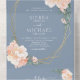 Dusty Blue Chic Blush Gold Peach Floral Wedding All In One Invitation