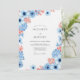 Evoke a charming, artistic atmosphere with this delightful design featuring painterly florals in dusty blue and coral hues. Delicate blooms and textured foliage create a whimsical yet elegant border. The combination offers a refreshing and vibrant feel for your special day.