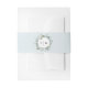 This elegant wedding belly band features a light dusty blue background with a wreath of cotton flowers, blue green foliages / leaves / greeneries, and faux gold berries. Change the background color and personalize it for your needs. You can find matching products at my store.