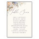Dusty blue and cream colored floral wedding 'table seven' card with elegant script and a text template for the guest's names.