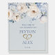 Elegant dusty blue, cream, and white watercolor floral Engagement party welcome sign with a gold trim and a cute heart. Contact me for assistance with your customizations or to request additional matching or coordinating Zazzle products for your event(s).