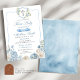 Dusty Blue Crest and Floral First Holy Communion Invitation