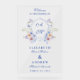 A refined and romantic wedding design featuring a dusty blue monogram crest framed by watercolor florals in pastel lavender, blush, and peach tones. The layout includes soft greenery, elegant serif and script typography, and a timeless format perfect for formal weddings.