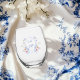 Dusty Blue Crest Floral Wedding Stemless Wine Glass